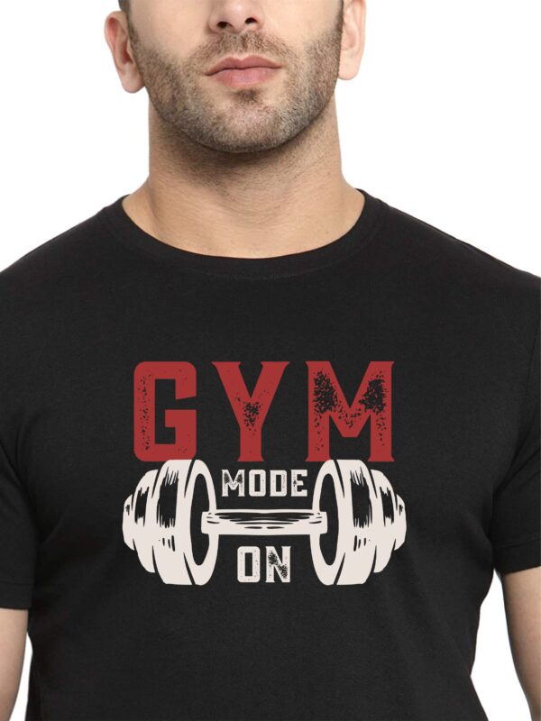 “GYM MODE” Printed T-Shirt, Black Round Neck, Bio-Wash Cotton, Regular Fit for Boys/Men